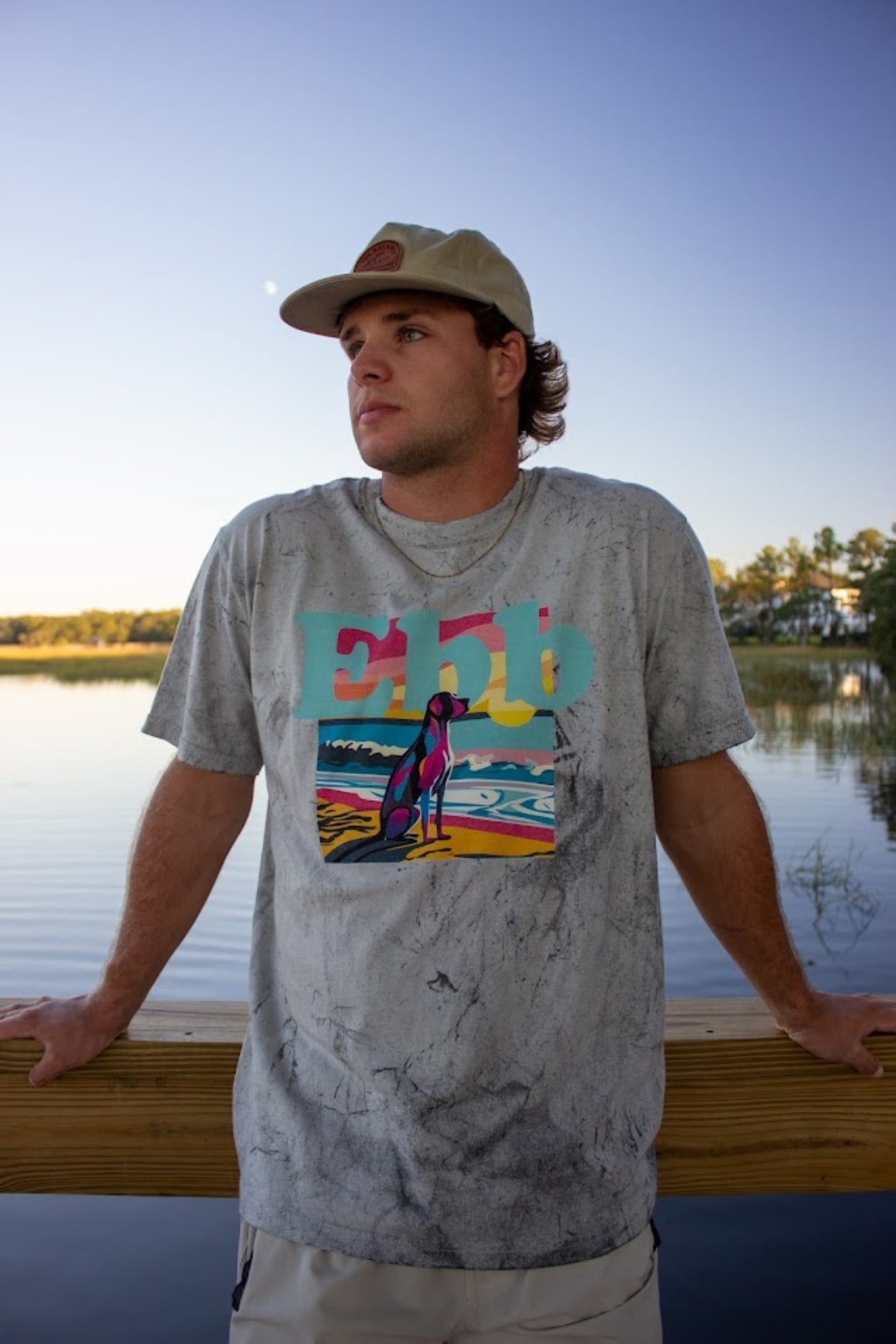 Vibrant color blast T-Shirt featuring a dog chilling on the beach, giving off a fun and summery vibe. Perfect for casual outings or beach days. Ideal for those who love vibrant colors and beach-themed designs. Relevant for summer wear, beach vacations, and casual hangouts.